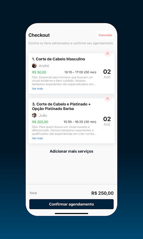 - Kullanım Şartları ve Gizlilik Politikalarına şu adresten ulaşılabilir: https://appbarber.com.br/termodeuso