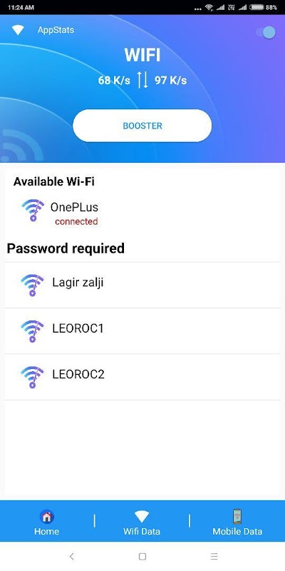 AppStats show the details of your data and wifi consumption. The Boost functionality helps you speed up your phone by closing unnecessary apps.