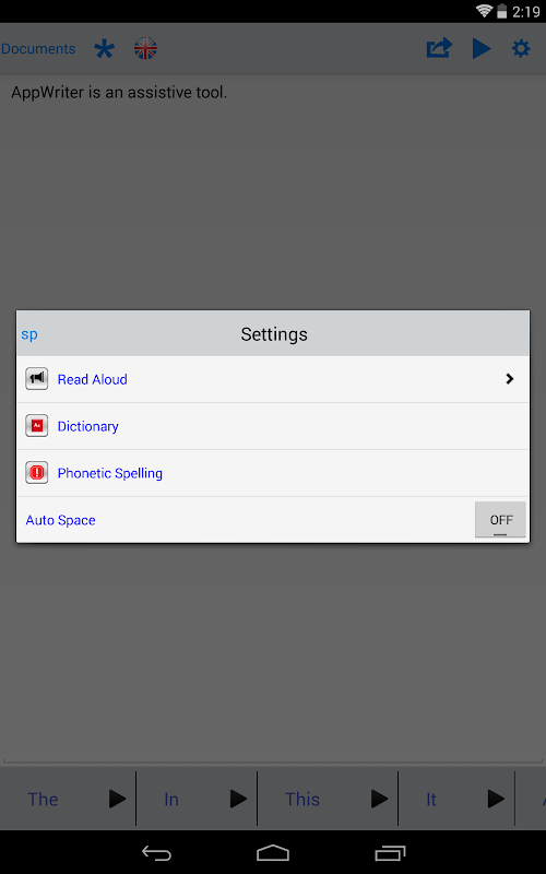 AppWriter er en unik teksteditor til Android, som giver ordblinde de nødvendige værktøjer til at læse og skrive tekst på dansk. AppWriter har integreret oplæsning og ordforslag, PDF-oplæsning samt mulighed for at oprette personlige profiler.