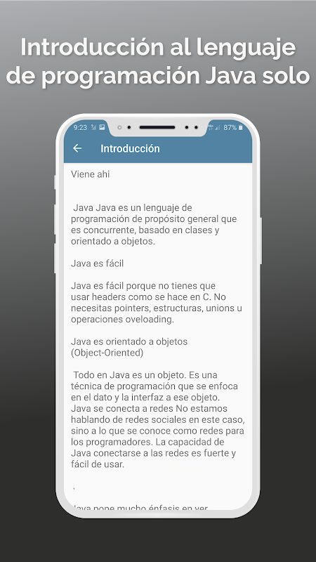 Java en español para aquellos que tienen necesidad de aprender rápido, pero a su nivel. Ven aprende Java solo con la ayuda de esta aplicación.
