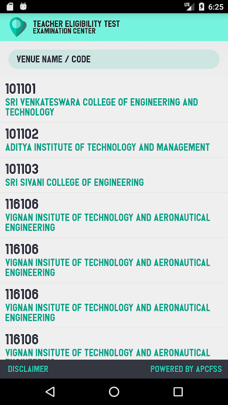 The app is intended to be used by the students who applied for Andhra Pradesh Teachers Eligibility Test - 2017. The app gives the location details of the examination centers and the address. The user can search with the venue / center code or center name.