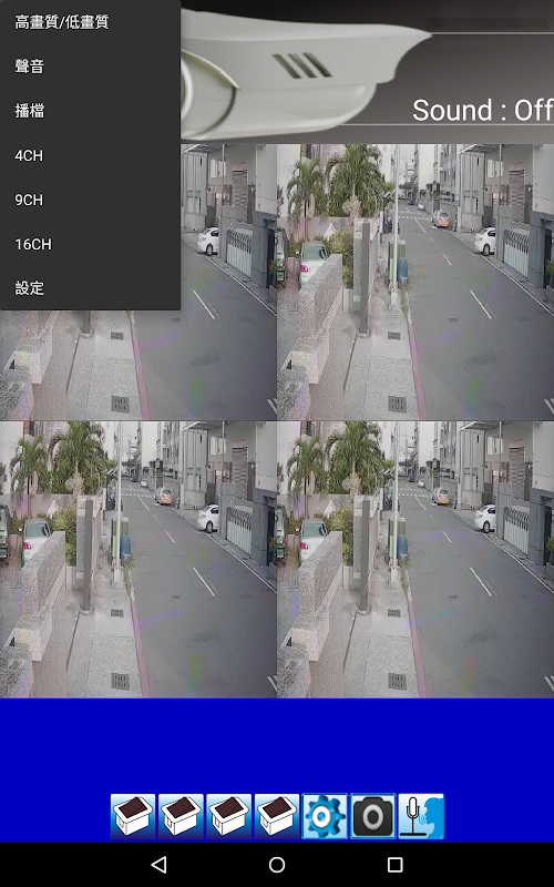 DVR görünümü menü butonuna basınız ses açma / kapatma (tek kanal modu) ve oynatma ptz kontrol, on / off, Yüksek Kalite ve Düşük Kalite moduna geçmek için.