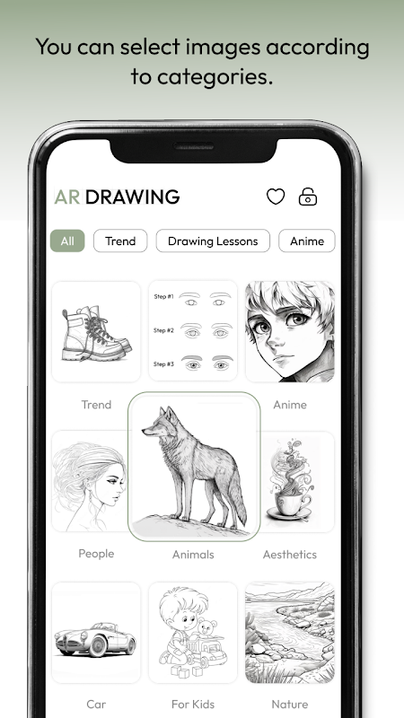 AR Draw Trace to Sketch, AR yöntemini kullanarak herhangi bir fotoğrafı ve nesneyi bir sanatçı gibi kolayca mükemmel bir çizime dönüştüren benzersiz bir uygulamadır. Uygulama, çeşitli senaryolarla çizimi öğrenmeye başlamak için farklı şablonlardan oluşan çeşitli koleksiyonlar sunar. Hayvanlar, anime, insanlar, estetik, araba, çocuklar, doğa ve daha pek çok farklı şablon bulun. AR Draw: Trace to Sketch uygulaması, fotoğrafta bulunan dersleri takip ederek mükemmel eskiz ve çizimi kolayca öğrenebileceğiniz ÇİZİM DERSİ olan en iyi özellikle birlikte geliyor.