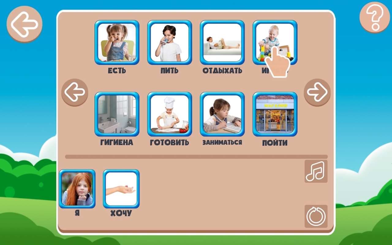 ○ "Составление предложений" - это коммуникативная доска, с помощью которой пользователь может составить предложение и выразить свои мысли и желания без использования слов.