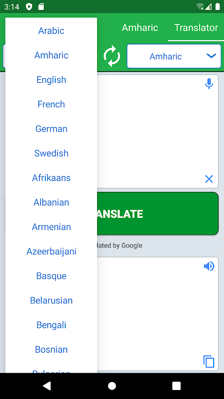 Çevirmen ile Arapça İngilizce Amharca Sözlük