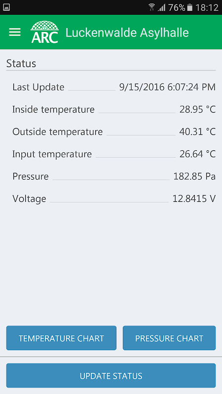 ARC uzaktan hava kubbe kontrolü için bir uygulama. Kullanıcılar kolaylıkla hava dome ayarlarını değiştirmek ve grafikler üzerinde görüntülenen hava kubbenin davranışlarını izleyebilirsiniz. anormal davranış kullanıcıların durumunda derhal e-posta veya itme bildirim yoluyla bildirilir.