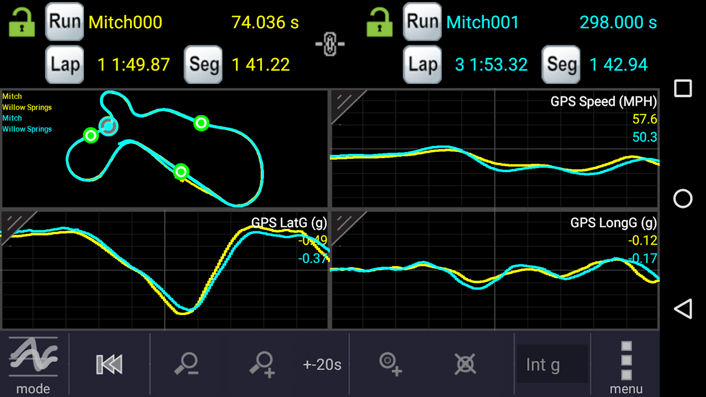 Kaydedilen veriler çalıştırır olarak kaydedilir. Araç 20MPH / 33KPH aşıyor ve araç yavaş yavaş hareket ederken bittiğinde Her Run başlar. Kayıt tetik hıza ulaşıldığında önce çalışma verilerinin birkaç saniye içerir. Bu şekilde otomatik çapraz vadede başlangıcı dahildir.
