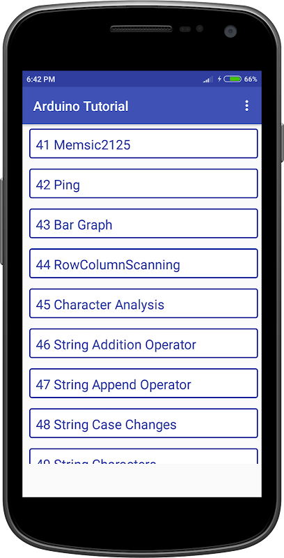 Arduino Tutorial app collections of Categories are below and provide all this Topic
