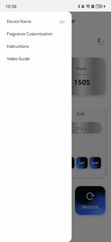 Aroma Master, koku cihazlarını kontrol etmek için özel olarak tasarlanmış bir Bluetooth uygulamasıdır. Bu uygulamayla kullanıcılar, koku yoğunluğunu kontrol etme, zamanlayıcıları ayarlama ve diğer kişiselleştirilmiş ayarlar da dahil olmak üzere koku cihazlarını kolayca bağlayıp ayarlayabilir ve ideal koku deneyimini yaratabilir. Uygulama, koku cihazlarınızın uzaktan yönetimi için basit ve sezgisel bir arayüz sunarak istediğiniz zaman, istediğiniz yerde rahat bir ortam yaratmanıza olanak tanır.