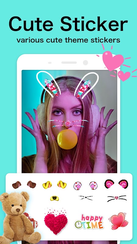 ● Sticker:There are many kinds of stickers, including birthdays, animal heads, hearts, love, roses and beautiful words to make your photos more vivid.