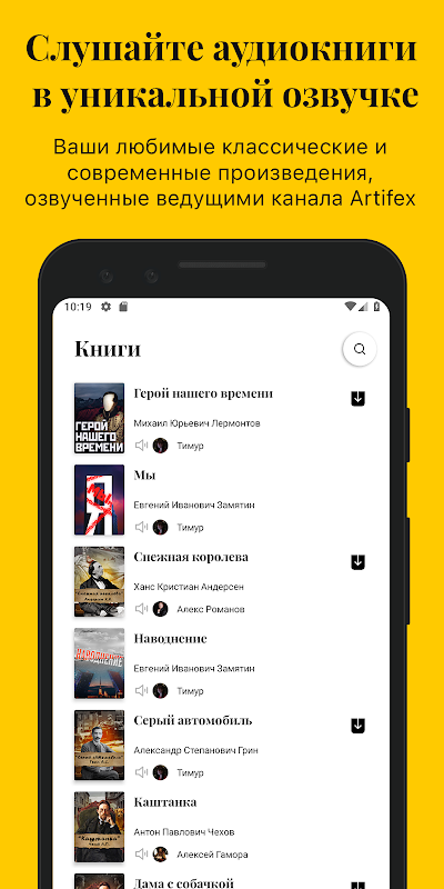 Ve ebedi klasikleri sevenler için - okumak - kitapları daha rahat bir şekilde tanımak için her şeye sahibiz. Artifex YouTube kanalının sunucuları tarafından seslendirilen, e-kitap veya sesli kitap için tanıdık bir format. Her seferinde bir kitaptan birini seçin veya tüm kütüphaneye aynı anda erişmek için aylık abonelik için kaydolun. Tek seferde bir sesli kitap satın almaktan daha karlı!