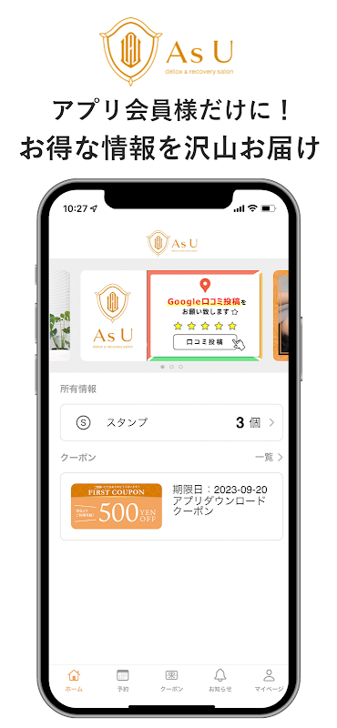 Uygulama aracılığıyla [As U] ile ilgili en son bilgileri ve fırsatları alabilirsiniz. Ayrıca dilediğiniz zaman akıllı telefonunuzdan menüyü ve istediğiniz saat dilimini kontrol edebilir ve rezervasyon yapabilirsiniz. Uygulamayı yükleyerek [As U] özelliğini daha rahat ve size yakın kullanabilirsiniz.