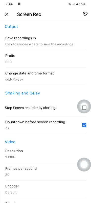 - Ekran kaydının özel saklama konumu