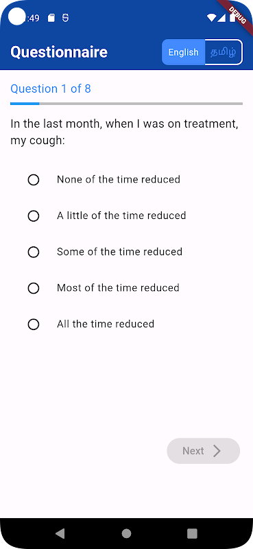 *) Dil Özelleştirme: Uygulama şu anda anketin İngilizce ve Tamil versiyonlarını desteklemektedir ve her iki dili de tercih eden kullanıcılara hitap etmektedir. Ek olarak, geliştiriciler, kullanıcının isteği üzerine diğer dillerdeki anket versiyonlarını entegre etmeyi teklif ederek, uygulamanın çeşitli bir kullanıcı tabanı için erişilebilir kalmasını sağlayarak kapsayıcılık ve erişilebilirlik konusunda kararlıdırlar.