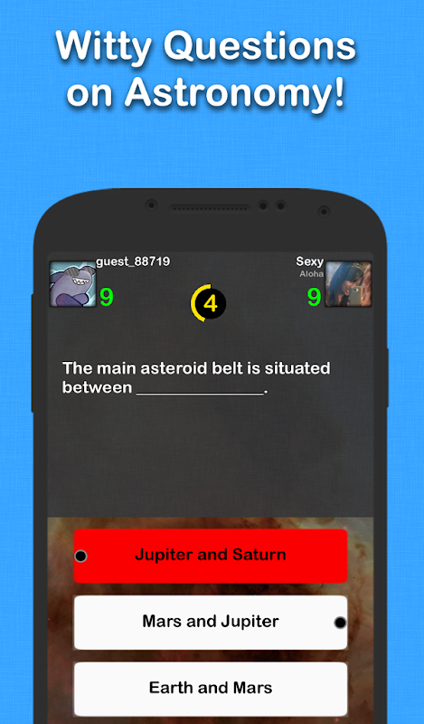 Bu oyunda 256 sorular Astronomi. Ücretsizdir, ve çok eğlenceli. Belki de hakkında çok fazla bilgim yok Astronomi. Yani ince. Astronomi için kullanabilirsiniz ıvır zıvır şeyler konusunda eğitilmesi Astronomi.
