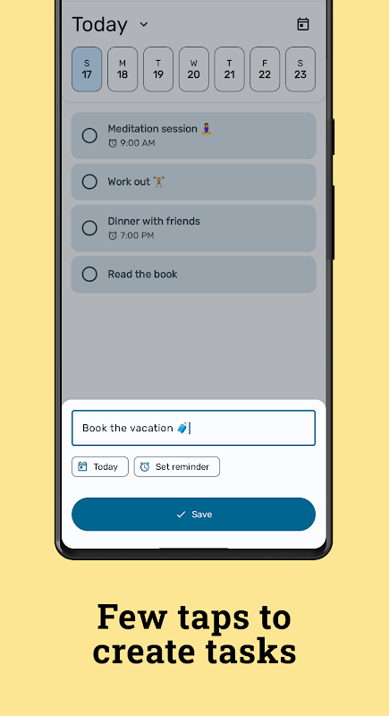 Günlük yapılacaklar listenizin en üst düzeyi olan MiniTask ile tanışın. Günümüzün hızlı dünyasında herkesin işleri basit ve minimalist tutan bir görev planlayıcıya ihtiyacı var. MiniTask bunu anlıyor ve hoş bir kullanıcı arayüzüne sahip, rahatsız edici reklamlar olmayan, %100 ücretsiz ve hiçbir abonelik gerektirmeyen yüksek kaliteli bir uygulama sunuyoruz.
