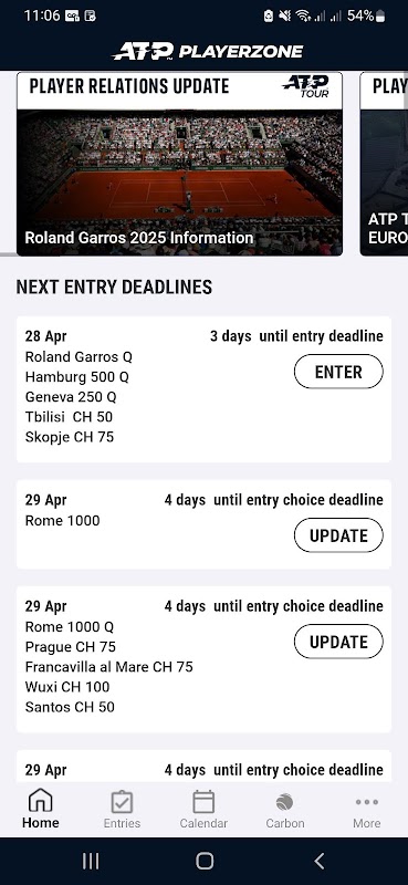 ATP PlayerZone uygulaması, ATP oyuncuları ve destek ekipleri için, tüm iş ihtiyaçlarını profesyonel tenis pistinde taşımak için gereken tüm bilgi ve araçları içeren merkezi bir platform sağlar. PlayerZone şifre korumalıdır ve sadece ATP tarafından onaylandığı takdirde kullanılabilir.