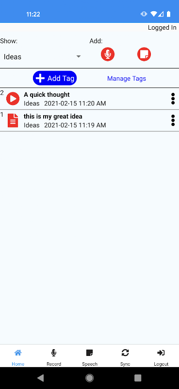 Omnicode'un Sesli Not Alıcısı ile her zaman, her yerde herhangi bir düşünceye tutunun! Bir not oluşturmak için ses/ses kaydediciyi veya konuşmayı metne kaydediciyi kullanın ve onu takip etmesi ve hatırlaması için bir etiket verin. Not kitaplığını Google Drive'da paylaşın.