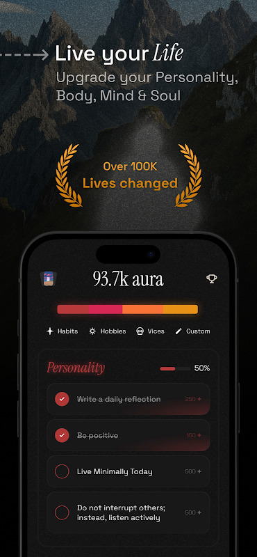 - Günlük büyüme: Görevleri tamamlayarak istatistiklerinizi artırın ve auranızı tutarlı bir şekilde büyütün.
