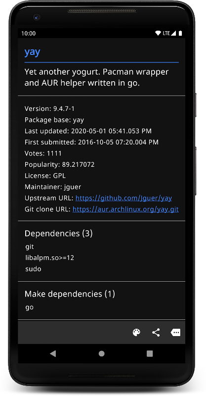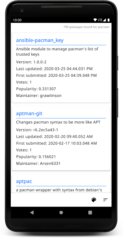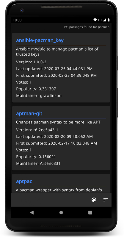 Basit Android AUR [Arch Linux Kullanıcı havuzu] paketleri tarayıcı.