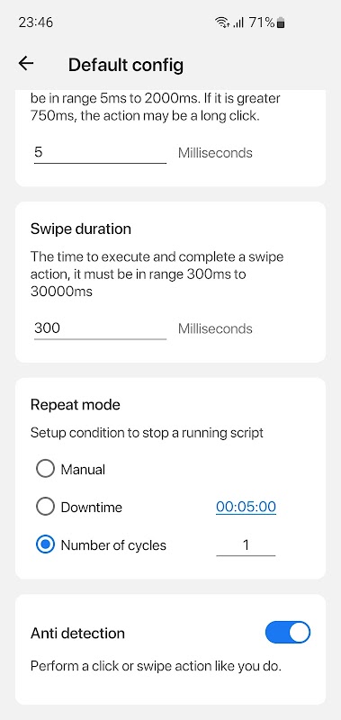 * Gecikme, dokunma süresi ve tekrar sayısı gibi tıklama parametrelerini ayrı ayrı ayarlayın