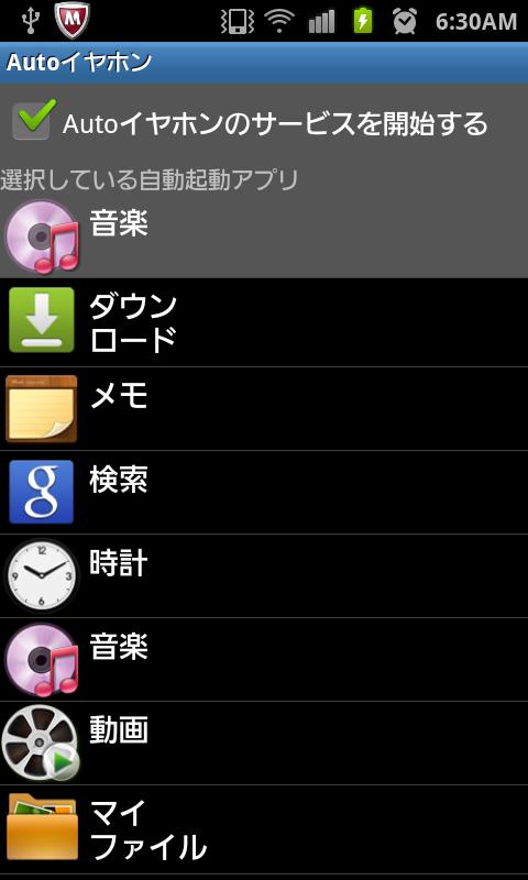 ・アプリ一覧の中からイヤホンを挿したときに起動したいアプリを選びます。