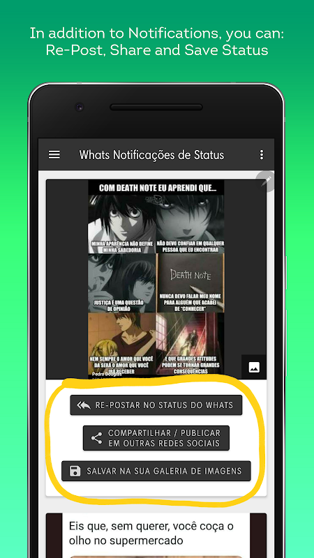 - The app allows you to re-post, share or save the WhatsApp Status of your friends and contacts.