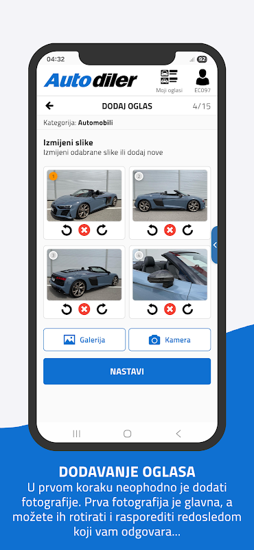 Uygulama, Autodiler.me sitenizi kolayca ve kolayca aramanıza, cep telefonunuzda arama yapmanıza, reklam eklemenize, en sevdiğiniz reklamları görüntülemenize ve kaydetmenize, kolayca satıcıyla iletişim kurmanıza, otomobil satıcılarının teklifini görüntülemenize ve reklamları arkadaşlarınızla paylaşmanıza olanak sağlar.