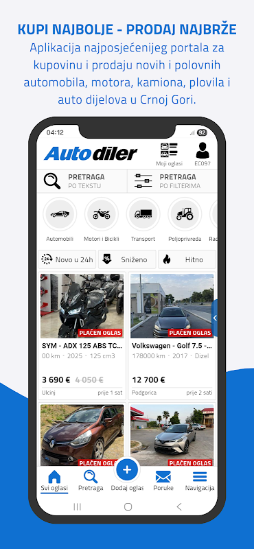 Karadağ'da kullanılmış araba, motor, kamyon, tekne ve otomobil parçaları satışı için en çok ziyaret edilen sitenin Android uygulaması. Bir araba satıcısı Karadağ'da bir araba satmanın en kolay ve en kolay yoludur.