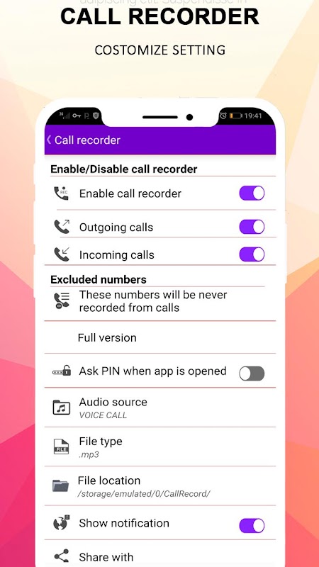 Her kayıt telefonunuza kaydedilir, kaydedilecek kendi seçim klasörünüzü de ayarlayabilirsiniz. Kaydınız kaydedildikten sonra, kaydettiğiniz aramaların her birini istediğiniz kadar paylaşabilir veya dinleyebilirsiniz.