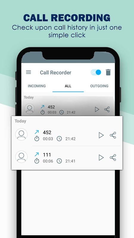 çağrı kaydedici - otomatik tüm çağrı kaydedici, gelen ve giden çağrılarınızın tam kaydını tutar ve her kaydı yönetebilirsiniz.