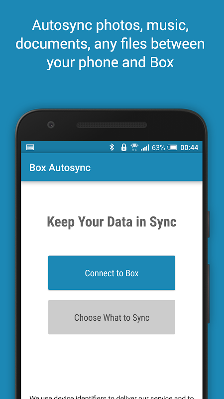 Bu uygulama otomatik bir dosya senkronizasyonu ve yedekleme aracıdır. Dosyaları ve klasörleri Box bulut depolama alanı (box.com) ve diğer cihazlarınızla otomatik olarak senkronize etmenizi sağlar. Fotoğraf senkronizasyonu, doküman ve dosya yedekleme, otomatik dosya aktarımı, cihazlar arasında otomatik dosya paylaşımı, ...