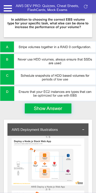 Ayrıca, AWS tarafından önerilen en iyi güvenlik uygulamalarına, SSS'lere, hile sayfalarına, Bilgi Kartlarına ve daha fazlasına erişebileceksiniz. Skor izleyicimiz ve geri sayım sayacımızla ilerlemenizi takip edebilir ve programa bağlı kalabilirsiniz. Hepsinden iyisi, uygulamamız çok dillidir, böylece kendi ana dilinizde hazırlayabilirsiniz.