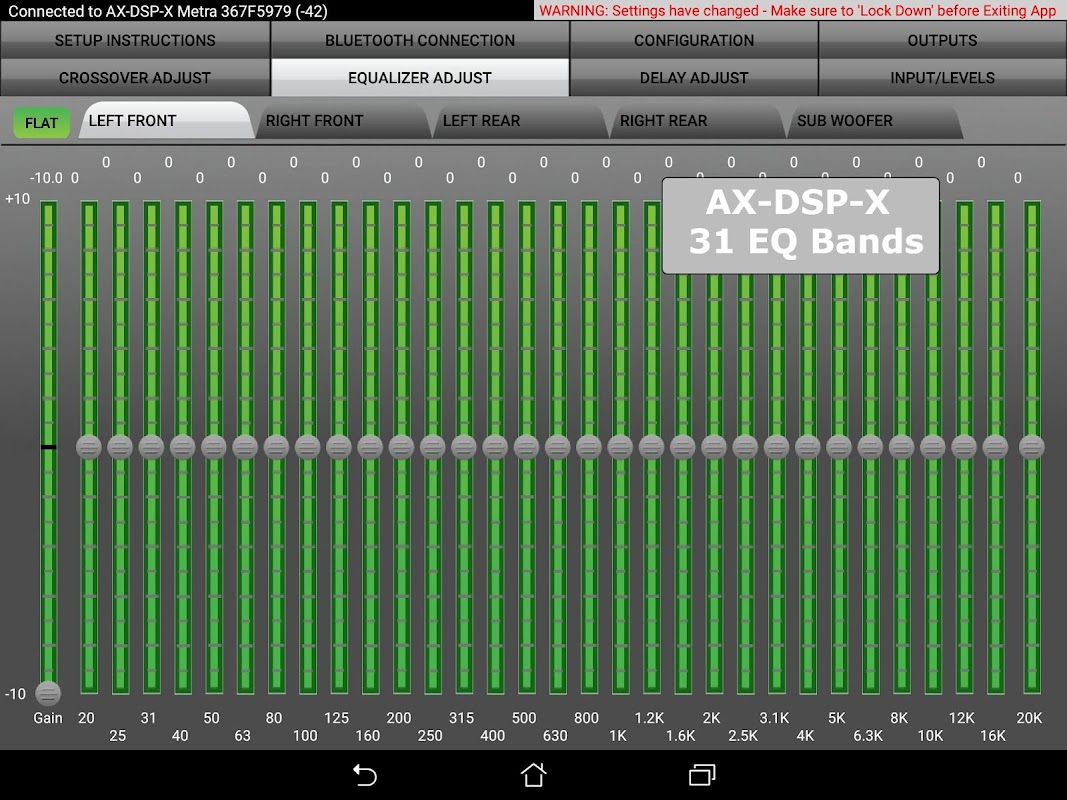 Metra Electronics'in AX-DSP-X ve AX-DSP-L DSP'lerini kontrol etmek için uygulama.