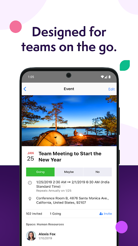 Önemli dosyalara göz atın ve açın, ekip arkadaşlarınızla gerçek zamanlı iş birliği yapın ve şirket haberleri ve konuşmaları hakkında güncel kalın; üstelik tüm bunları avucunuzun içinden yapın. Hızlı arama ve kullanıcı dostu arayüzüyle ihtiyacınız olanı hızlı ve zahmetsizce bulabilirsiniz.