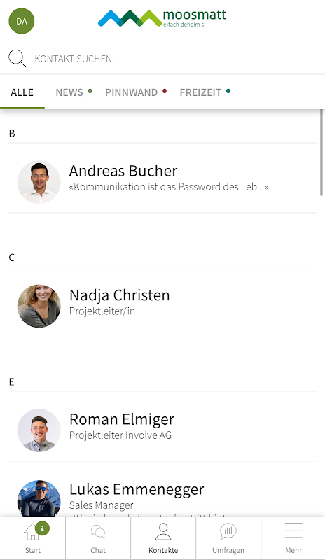 Şirketiniz hakkında en son bilgileri nerede olursanız olun ve istediğiniz zaman öğrenin, iş arkadaşlarınızı iletişim rehberinde bulun ve 1: 1 veya grup sohbetlerinde sohbet edin. Güvenli İsviçre sunucularında güvenilir İsviçre yazılımı ile her şey.