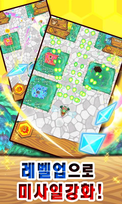 벌레를 퇴치하면 획득할 수 있는 벌꿀을 모아 레벨업을 시키며 강력한 보스까지 퇴치해 주세요!!