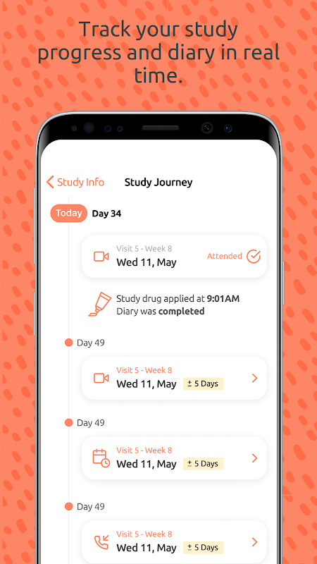 Track your daily activity in real-time while only a touch away from your doctor. B-SIMPLE’s user-friendly interface provides easy access to study information, reminders of what to prepare for your next appointment, calendar updates, and more!