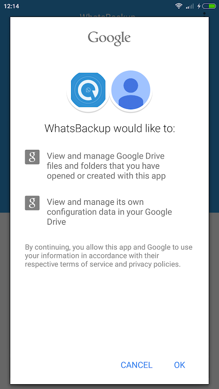 Aracı Google Drive Bulut kişisel hesabına WhatsApp için yedekleme yüklemek için.