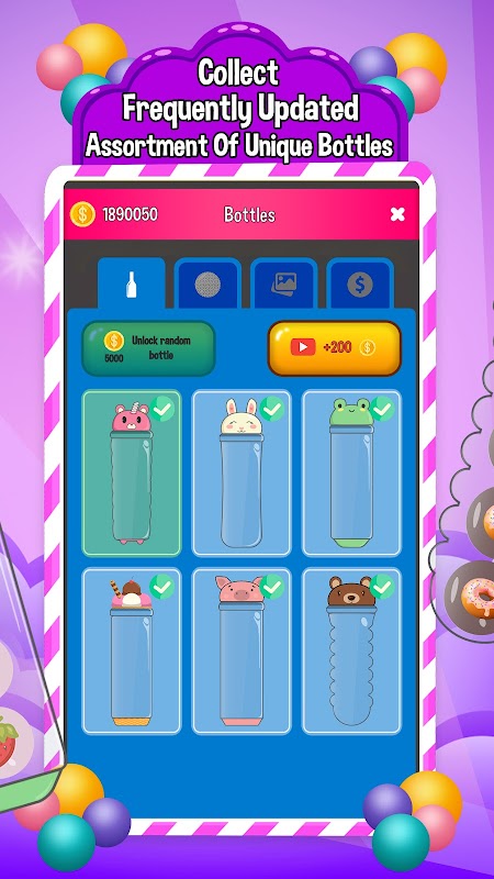 💧 Sık sık güncellenen benzersiz şişe çeşitlerini kazanın ve toplayın.