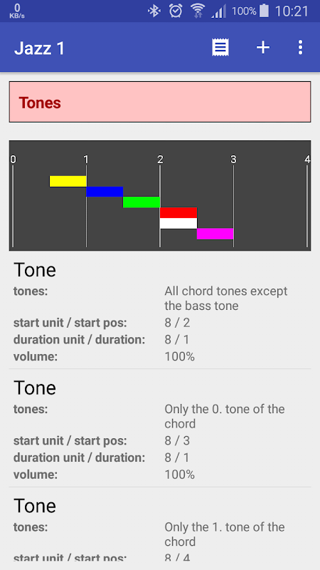 The playback repeats and progression can be set individually; the created arrangements can be saved.
