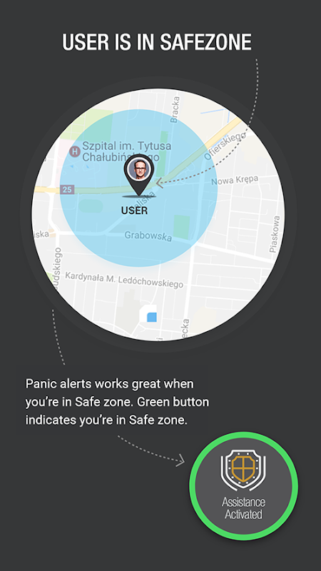 Özel güvenli bölgenizi seçin: Haritada güvenli bölgeye karar verebilir ve işaretleyebilirsiniz. Güvenli bölgedeyken panik butonu otomatik olarak devreye girer.