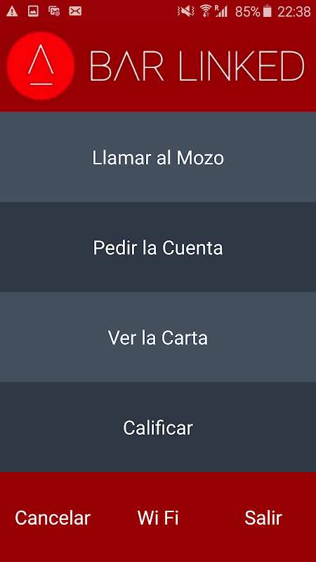 Bar-Linked permite llamar al mozo, solicitar la cuenta, leer el menú, obtener los datos de la conexión WiFi, y calificar al bar.