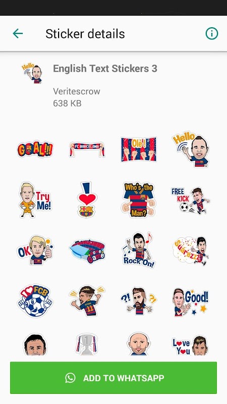 Más de 100 stickers para WhatsApp™ del Fútbol Club Barcelona. Español e inglés.