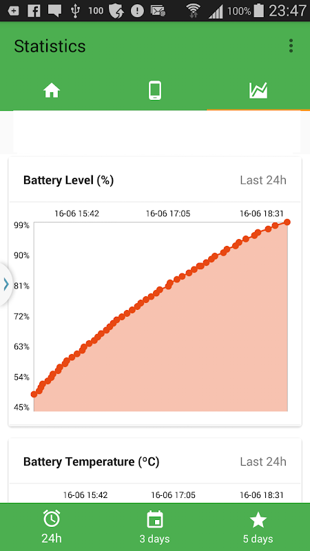 Bilgiler, Pil Seviyesini ve zaman içindeki Sıcaklığı içerir.