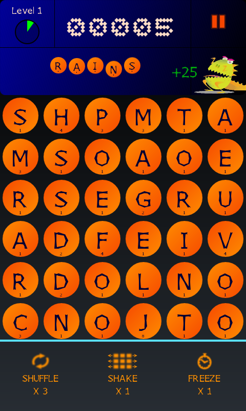 A word search game with a few twists! Play Bean Gobble mode - no timers! No pressure! Just find as many words as you can.
