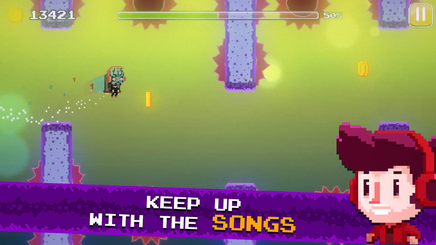 The gameplay is as simple as one touch jumps and hops. You just need to rush forward in tune with the amazing beats the game offers. Dance your fingers to the adventurously good music.