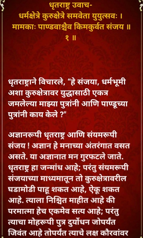 Bhagavad Gita uygulaması Marathi dilinde basitçe tasarlanmıştır.