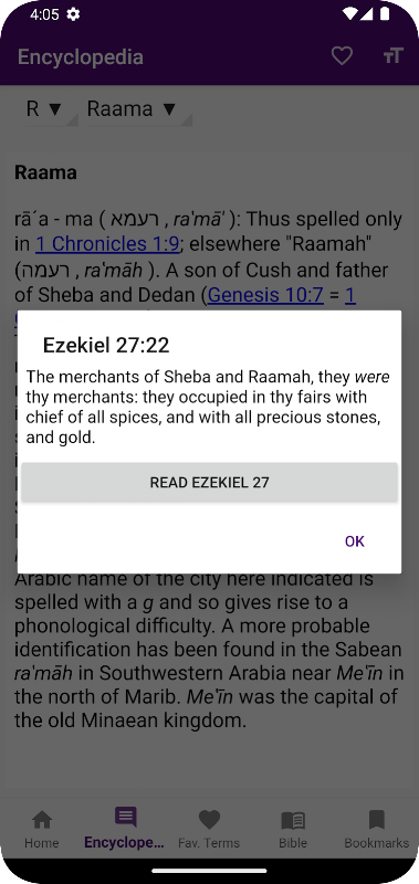 ISBE, klasik King James Versiyonu İncil'e bağlanırken kusursuz entegrasyonun gücünü deneyimleyin. Ansiklopedi girişleri ve karşılık gelen İncil ayetleri arasında zahmetsizce gezinin. Metin ve bağlam arasındaki karmaşık bağlantıları çözerek İncil çalışmalarınızı derinleştirin.