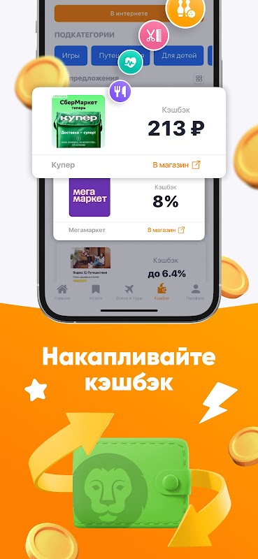 Kuponlara ve indirimlere ek olarak, ürün ve hizmetlere yönelik promosyon kodlarımız da bulunmaktadır. Promosyon kodları, satın alma işleminizde ek indirimler almak için kullanılabilir. Uygulamanın aynı zamanda para iadesi özelliği de bulunuyor. Kullanıcılar AliExpress, M.Video, Tez Tour, Tutu ru ve diğerleri gibi popüler çevrimiçi mağazalardan ve hizmetlerden yaptıkları alışverişler için para iadesi alırlar. Biriken para iadesi gelecekteki satın alımlarda ödeme yapmak için kullanılabilir.